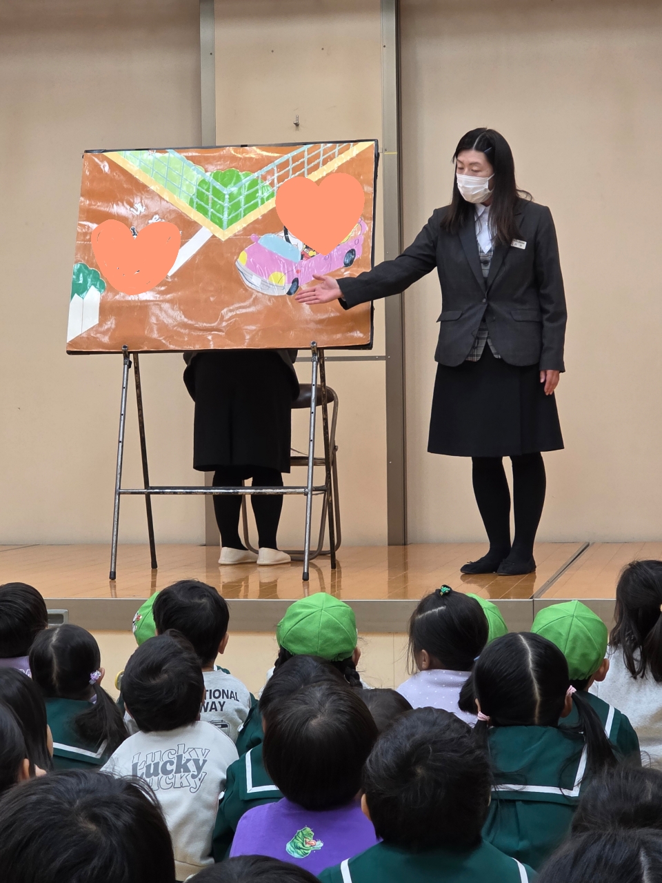 先日、全園児ホールに集まり交通安全教室に参加しました🚓