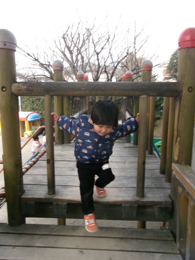 12月10日 だんだん冬の空気になってきました。ですが幼稚園のみんなはとっても元気!お外で小さいお友だちが来るのを待っていました。 いっしょにあそびましょ ・・・ -