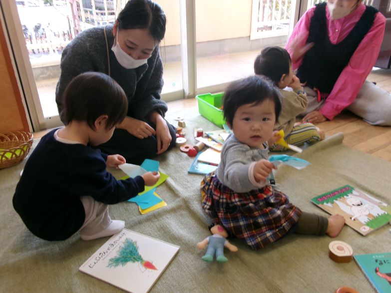 ママが制作している間は、お手伝いに来てくれた卒園生ママたちがベビーちゃんと一緒にいてくれました。